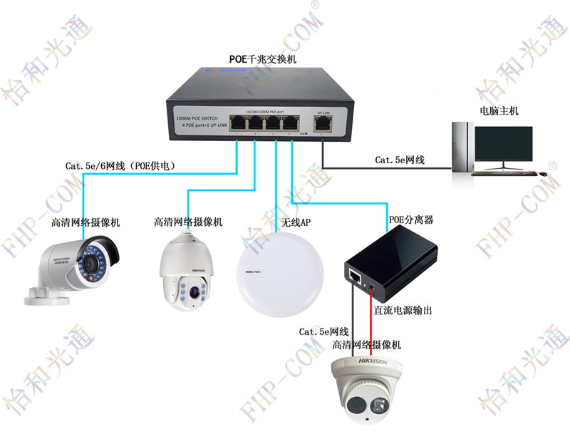 4個千兆POE供電端口,一個千兆上聯端口,內置電源(AC100-265V輸入),PoE輸出總功率為60W