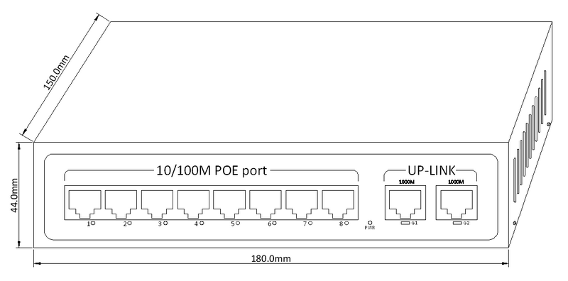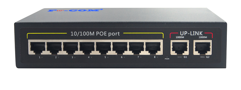 8路百兆PoE供電口+2路千兆UP-LINK以太網(wǎng)交換機(jī)