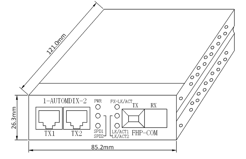 2個百兆電口+1個千兆FX光口以太網(wǎng)收發(fā)器,支持2個10/100Base-Tx電口和1個100Base-FX光口。它將網(wǎng)絡(luò)傳輸距離的極限從雙絞線的100米擴展到了100公里以上,產(chǎn)品符合FCC、CE標準,非網(wǎng)管機型,即插即用,無需配置,使用簡單方便。