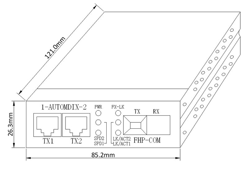 2個千兆電口+1個千兆FX光口以太網(wǎng)收發(fā)器,支持2個10/100/1000Base-T電口和1個1000Base-X光口。它將網(wǎng)絡傳輸距離的極限從雙絞線的100米擴展到了100公里以上,產(chǎn)品符合FCC、CE標準,非網(wǎng)管機型,即插即用,無需配置,使用簡單方便。