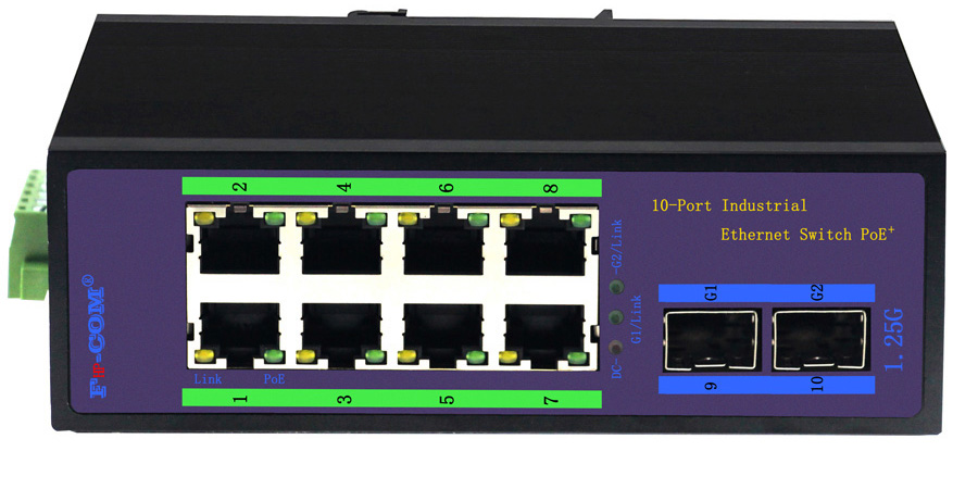 8路百兆PoE電口+2路千兆SFP光口工業(yè)級(jí)以太網(wǎng)PoE交換機(jī),支持8個(gè)10/100Base-TX電口和2個(gè)1000Base-X光口。產(chǎn)品符合FCC、CE標(biāo)準(zhǔn)。FIGE28P-SFP交換機(jī)具有-40℃~85℃的工作溫度,具有超強(qiáng)的堅(jiān)固度能適應(yīng)各種嚴(yán)苛環(huán)境,也可以非常方便的安置在空間緊湊的控制箱中。導(dǎo)軌的安裝特性、寬溫操作及擁有IP40防護(hù)等級(jí)的外殼及LED指示燈,使FIGE28P-SFP成為一個(gè)即插即用的工業(yè)級(jí)設(shè)備,為用戶的以太網(wǎng)設(shè)備聯(lián)網(wǎng)提供可靠、便捷的解決方案。
